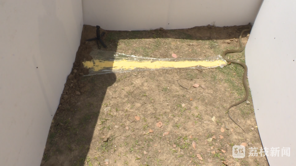 今年5月以来,淮安消防部门接到关于蛇类的求助警情近10起。为了测试市面上的驱蛇产品、网传驱蛇方法的功效,消防员准备了多款驱蛇产品,将一条长约两米的无毒菜花蛇,放置在由隔板围成的宽2米、长3米的封闭区域内。